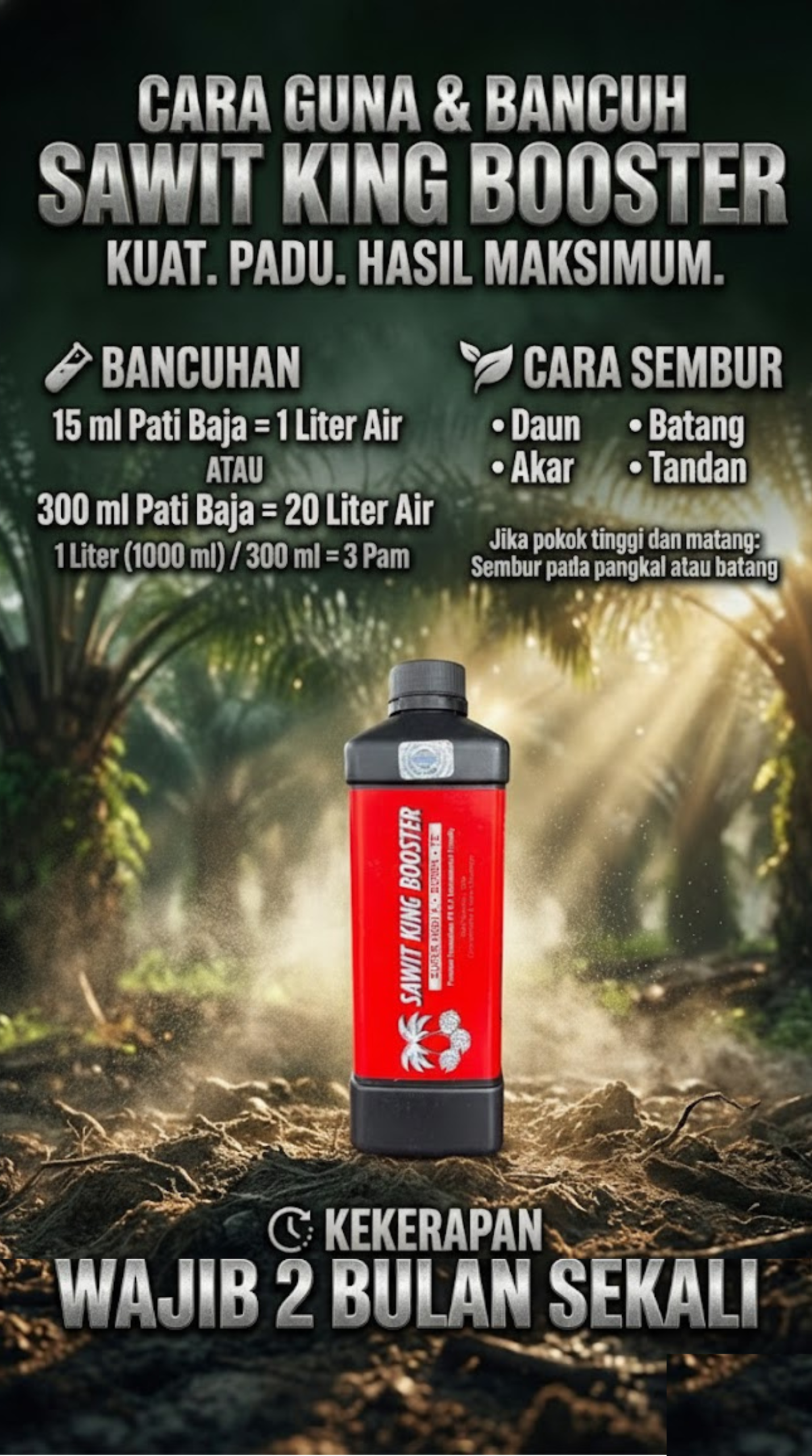 *PENAFIAN: Keberkesanan produk ini bergantung kepada kesesuaian pokok. Setiap hasil dari penggunaan adalah berbeza bagi setiap pokok. Produk ini akan memberi kesan terbaik sekiranya pengguna mengamalkan dengan cara betul berdasarkan banyak testimoni yang diperolehi. Kita berikhtiar, tuhan yang menentukan.
